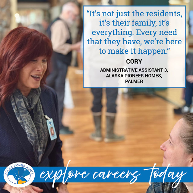 Not sure if a career with the Alaska Pioneer Home is right for you? Volunteer with us to first to find out! See the Volunteer section on our Recruitment page.